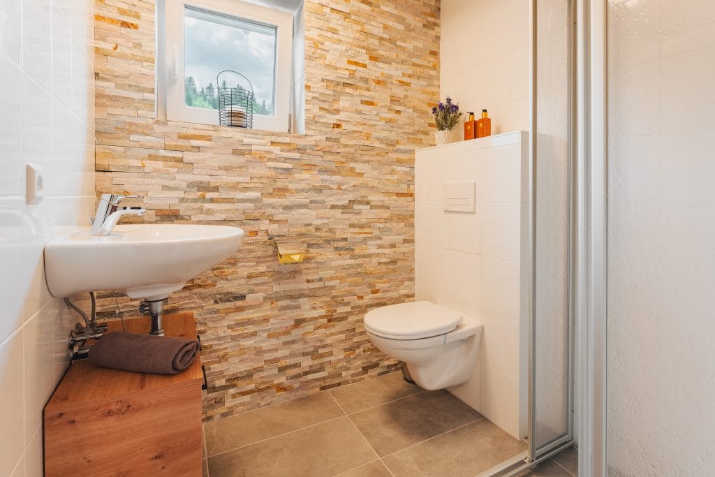 Next to the master bedroom you will find the second bathroom. Which has a shower, toilet and sink.