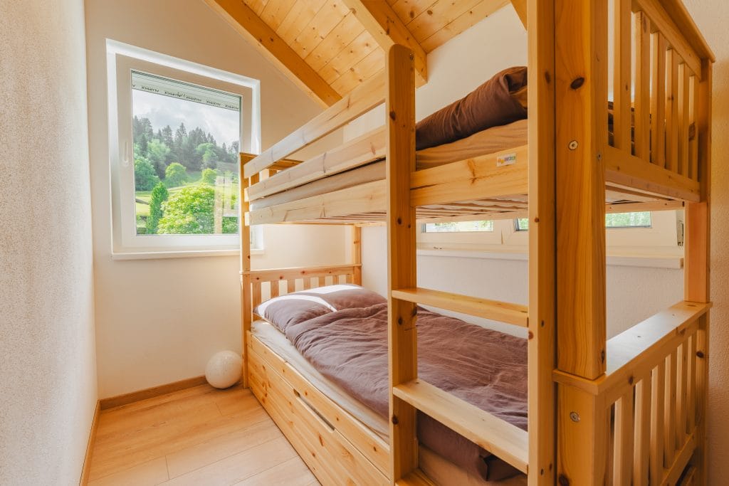 Also you will find the family bedroom on the first floor. It has a box spring 2mX1.80m, a closet and a bunk bed which can hold three small children.