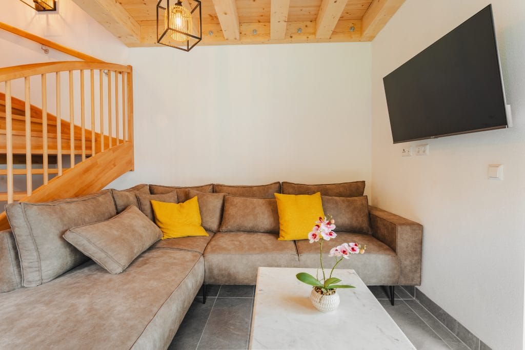 On the other side you will find a corner sofa where you can relax and enjoy watching Netflix on the tv.
